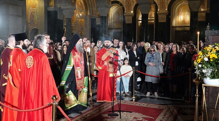 Његова Светост Патријарх српски г. Порфирије је служио вечерас 14. марта 2025. године акатист Пресветој...