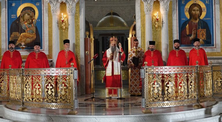 Његова Светост Патријарх српски г. Порфирије је служио 17. априла 2025. године, на Велики четвртак,...
