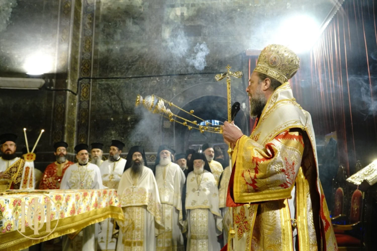 Увече у недељу Пасхе, 12. априла, у Саборној цркви Премудрости Божије (Света Софија) у Солуну,...