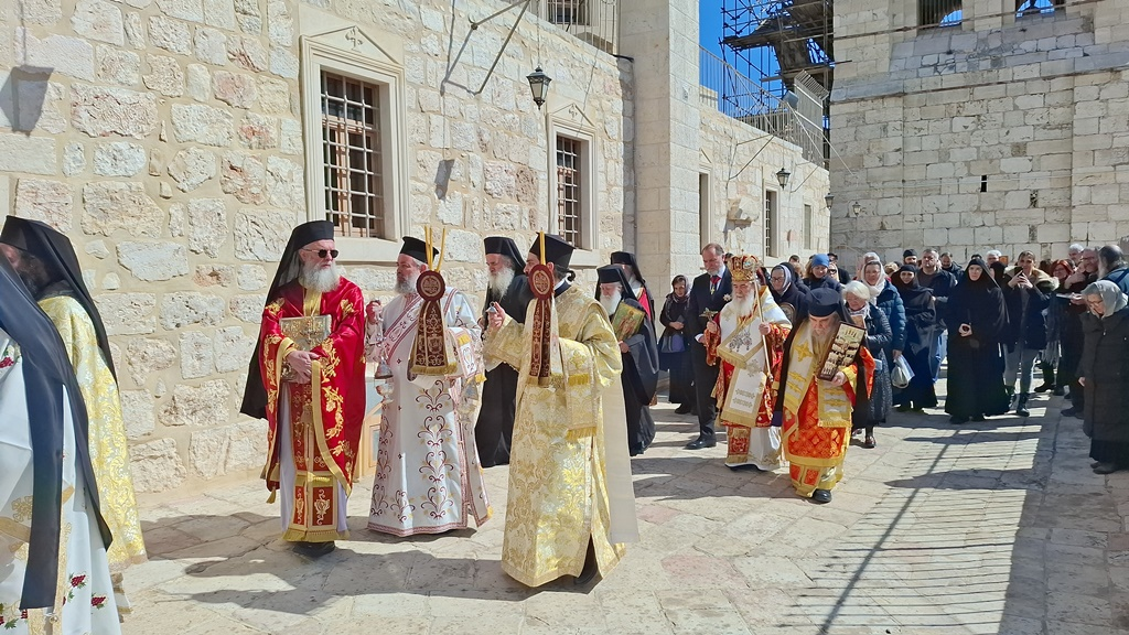 Због избијања рата између Сједињених Америчких Држава и Ирана, и због бомбардовања територије Израела од стране Ирана, а посебно у Светом граду Јерусалиму, вечерње ове Недеље Православља није служено уобичајеним редом у Цркви Гроба Господњег, јер је затворена из безбедносних разлога, већ у Патријаршијској и монашкој цркви Светих Константина и Јелене. Његово Блаженство, наш Отац и Патријарх Јерусалимски, Теофил III, председавао је, саслужујући са Оцима Светог Гроба који су служили Цркви, и са Јерарсима који су учествовали у молитви.
