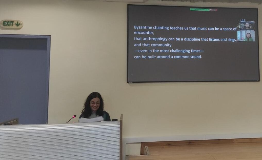Том приликом, др Гордана Благојевић представила је своје истраживање на енглеском језику, у оквиру излагања под насловом „Појање кроз дисциплине: Антрополошко истраживање византијске црквене музике“ (“Chanting Across Disciplines: An Anthropological Engagement with Byzantine Church Music”). Њено излагање било је део сесијâ посвећених иновативним приступима у настави и укључивању шире публике у савремену антрополошку праксу.