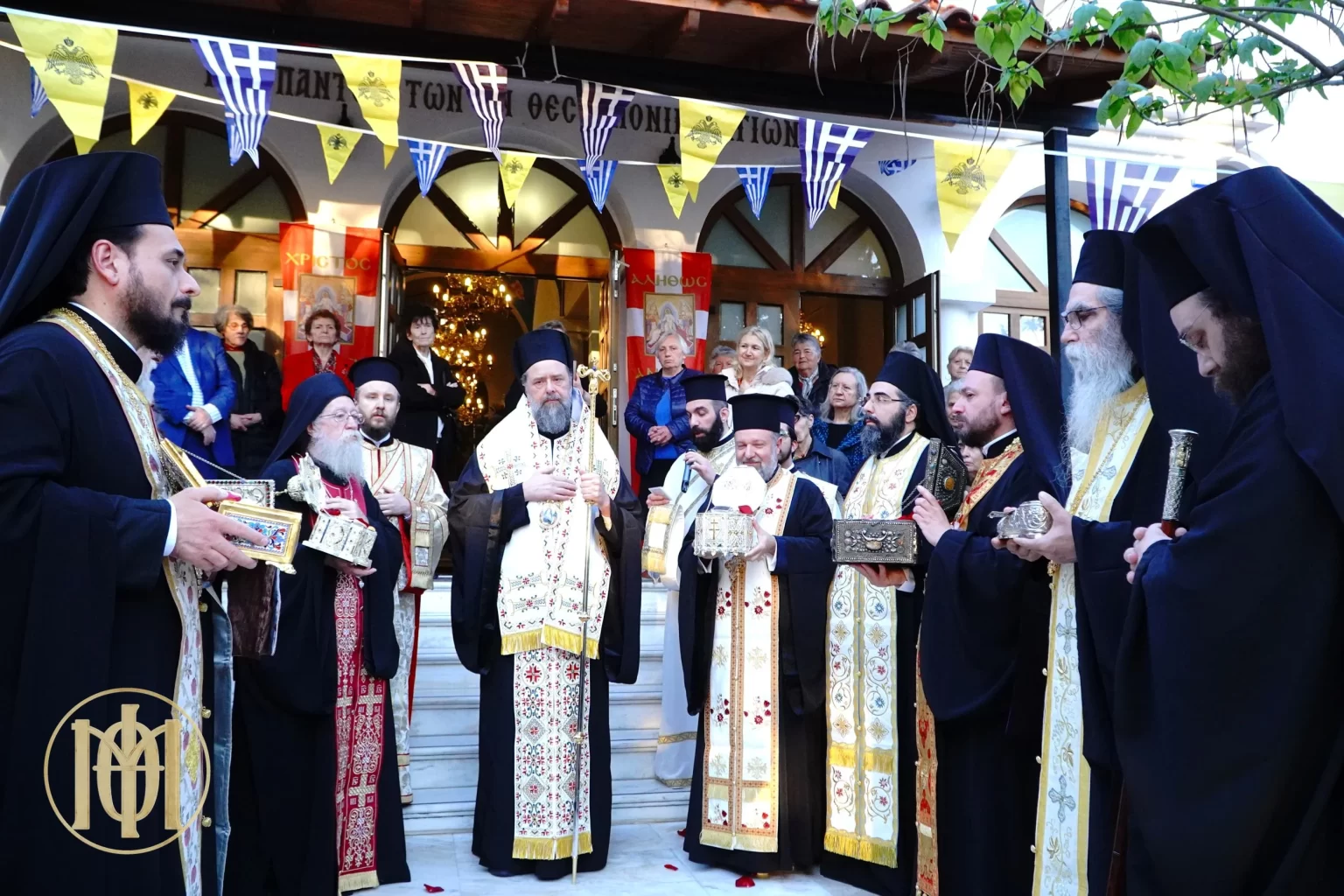 У атмосфери емоција и радости, у цркви Свих светих Солуна, која припада Образовној и културној фондацији „Свети Григорије Палама“, Његово Високопреосвештенство Митрополит солунски Филотеј, у пратњи свештенства и верника Митрополије, примио је, по обичају, свете мошти светих града, чиме је благословио почетак празника Сабора свих светих Солуна.