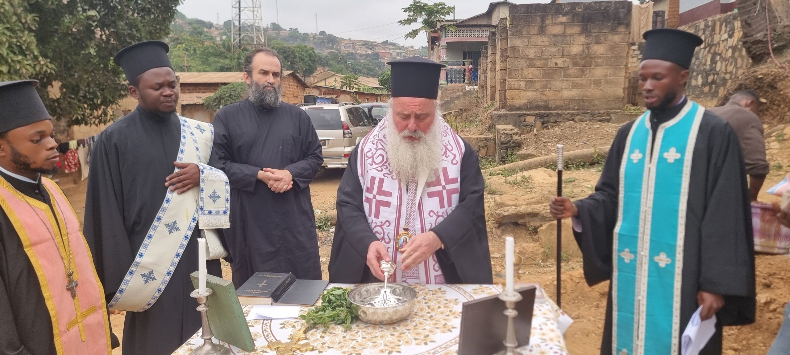 У недељу поподне, митрополит, у пратњи светогорског монаха оца Кукузелиса и других, обавио је церемонију полагања темеља за цркву Светог Ђорђа. На догађају су били присутни локални старешина насеља и неки од првих верника.