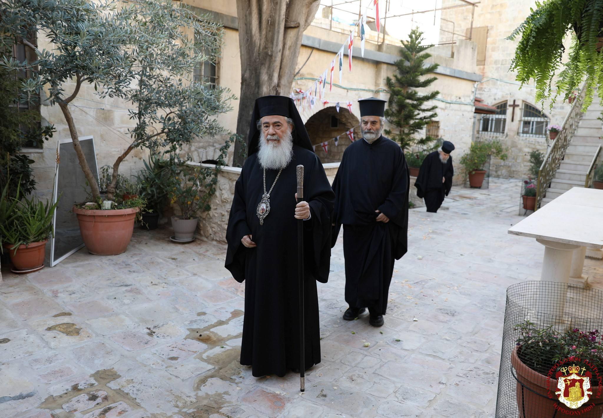 Током Божанске литургије, јерусалимски патријарх Теофил III посетио је Свети манастир ради поклоњења.