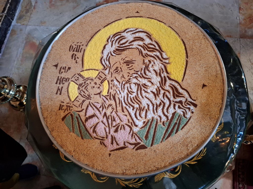 Саслуживали су високопреовећени архијереји назаретски Киријак, константински Аристарх, таворски Методије и лидски Димитрије, уз саслужење свештенства из више помесних Православних Цркава и молитвено учешће верника из Грчке, Русије, Румуније, Србије и Грузије. – Благодат Духа Светог нас је окупила у овој чувеној монашкој обитељи Праведног Симеона да прославимо празник Сретења Господа нашег Исуса Христа када га је старац Симеон примио у наручје своје. Очи Праведног Симеона виделе су спасење Божје које је духовна светлост, о чему сведочи псалмопојац: „Светлост се просипа на праведника“ (Пс 97,11). За сваког доброг и праведног ова божанска и духовна светлост се уздиже у уму и срцу, запажа Свети Кирило Александријски. Ова духовна светлост је оно што ће народима открити правог Бога и прави пут праведности, односно спасења, као што и поје цар Давид : „Јави Господ спасење своје, пред народима откри правду своју (Пс 98,2) – беседио је патријарх Теофил.