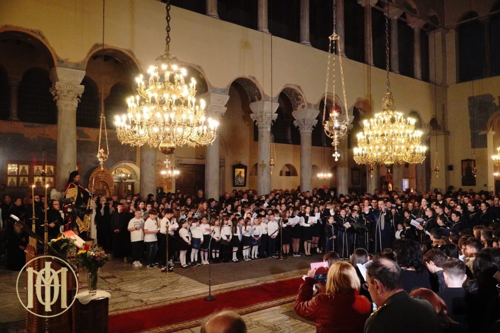 По први пут у историји помесне Цркве толико ученика је учествовало у певању на светој служби. Ови ученици су учествовали у образовно-културном програму за основно и средње образовање, који је покренула Митрополија Солунска, под називом: „Акатист – кондак и канон“.