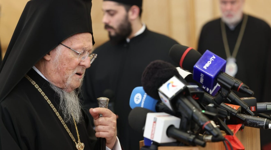 „Долазимо са срцима пуним радости и љубављу Мајке Цркве Цариграда“, рекао је Васељенски патријарх по доласку, „да бисмо учествовали у прослави 140. годишњице доделе Томоса о аутокефалности Румунској православној цркви и 100. годишњице њеног уздизања на патријаршки ранг од стране Васељенске патријаршије.“ Патријарх Вартоломеј се присетио своје претходне посете 2018. године, када је учествовао у освећењу олтара Националне катедрале и изразио радост због повратка у Букурешт ради благослова мозаичке иконографије катедрале. „Сада морамо поново бити заједно са Његовим Блаженством Патријархом Данилом, у братској љубави и солидарности“, наставио је, „да прославимо освећење мозаичке иконографије овог величанственог Божјег дома, посвећеног племенитом румунском народу и његовим дубоким духовним и културним традицијама.“