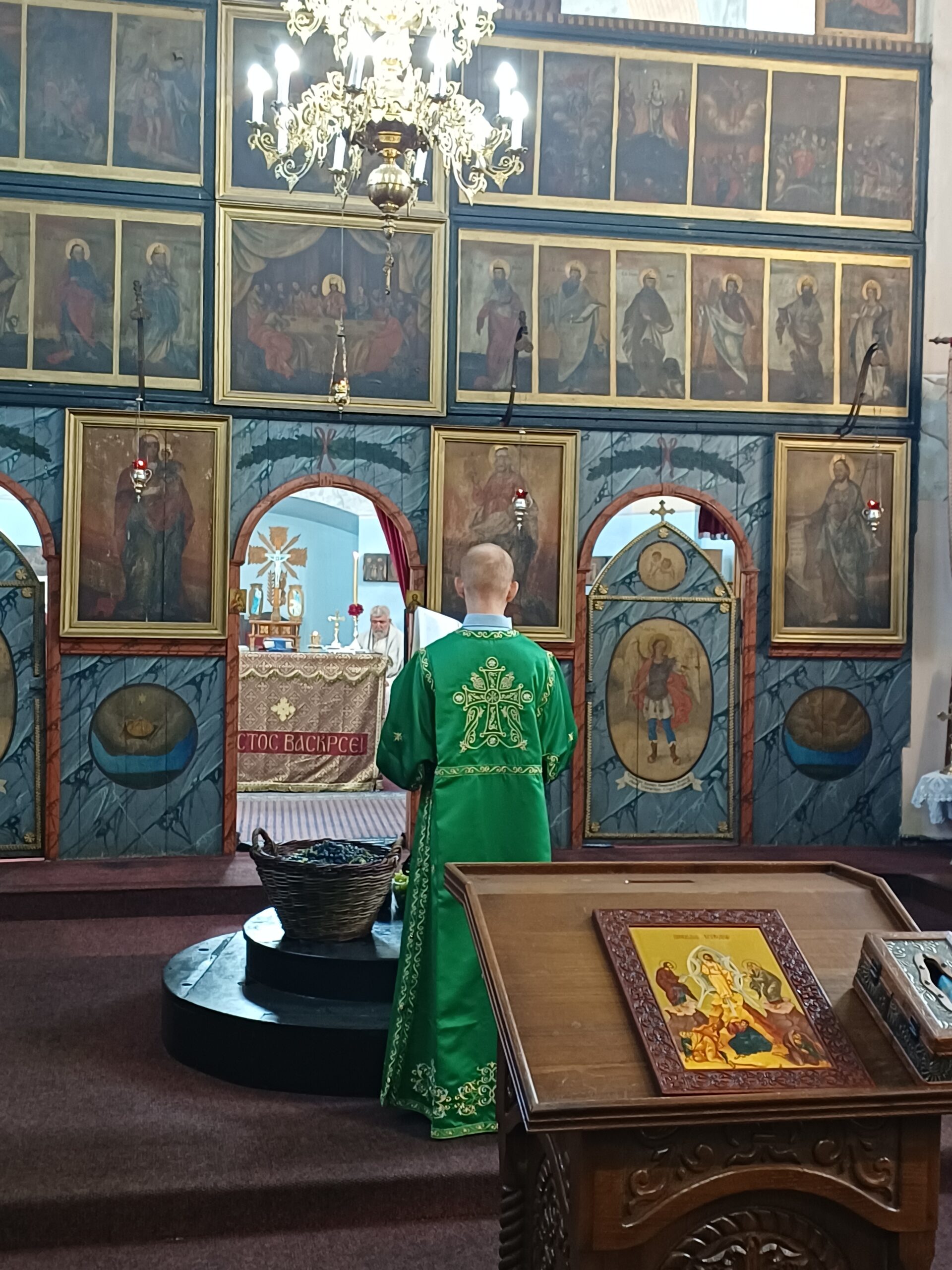 Зачало из Апостола произнео је новосадски катихета Бранислав Илић. Уз молитвено учешће великог броја сабраног народа Божјег, на литургијске прозбе одговарали су појци станишићког храма.