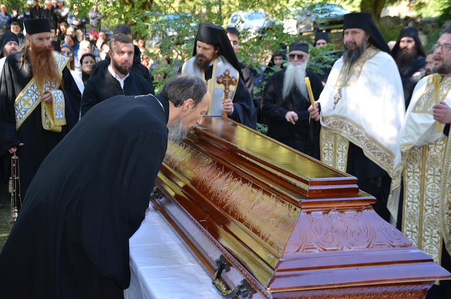 Потом су на манастирском гробљу Владика Пајсије и Архиепископ мостарско-требињски и Митрополит захумско-херцеговачки и стонско-приморски г. Димитрије са саслужитељима служили монашко опијело.