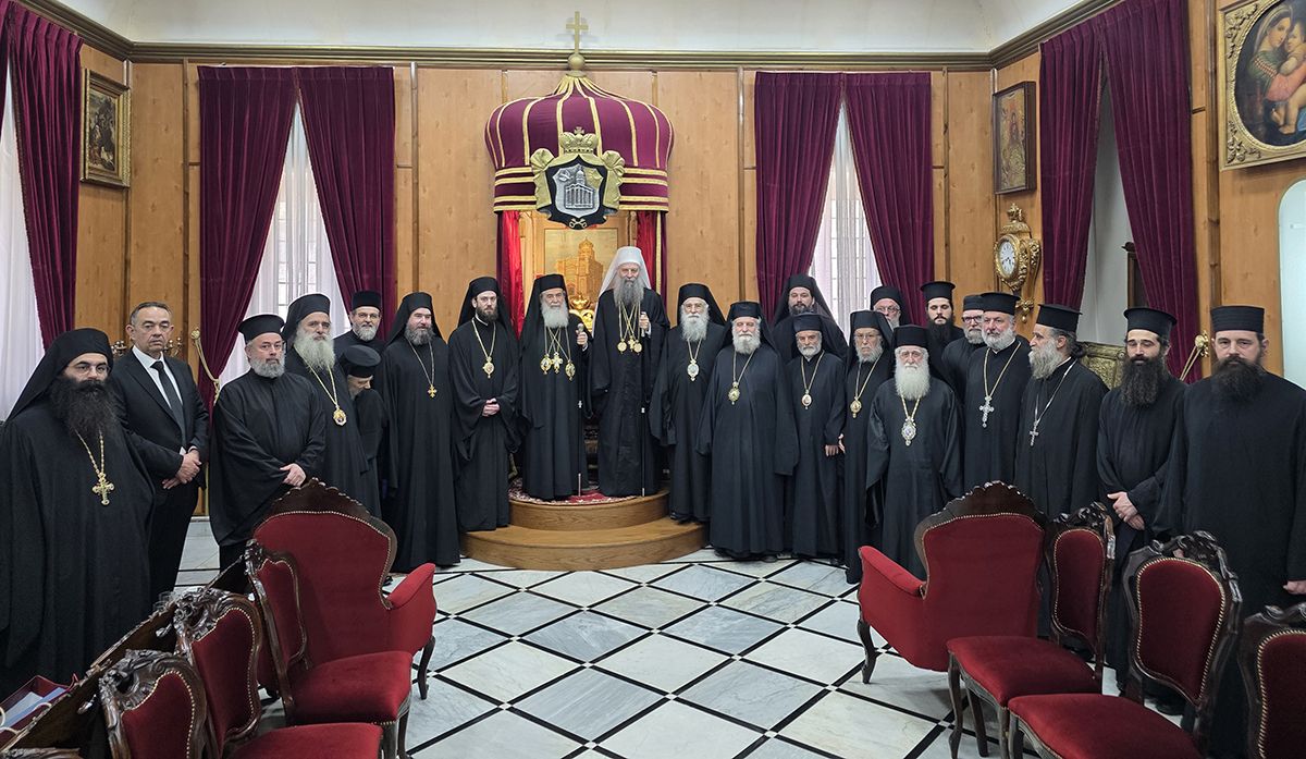 – Сваки хришћанин, а тим пре свештеник и епископ, када долази у Свету Земљу обузет је осећањем да се као блудни син враћа у Очев дом, јер где год да се налазимо ми духовно, из дубине душе, осећамо да је овде наш дом, да је овде наша отаџбина и наша постојбина, да је овде извор испостави сваког хришћанина. То је због тога што је управо овде основана Црква Христова и што је овде истина и стварност Цркве као Тела Христовог. Важно је да имамо на уму ову истину, баш као што је и црквени химнограф ту истину изрекао речима: Радуј се Свети Сионе, мајко свих Цркава! Важно је то да имамо у нашим душама нарочито данас када у целом свету имамо немире, сукобе, свађе, размимоилажења и ратове. Важно је, јер је ово место мира, место спознаје да је сваки човек створен као икона Божја и да човек човеку није непријатељ и противник, него ближњи и брат. Стога наш подвиг јесте у томе да сваког човека прихватимо као свога брата. Ту истину нарочито осећамо овде, у овој светој, мученичкој и страдалној Патријаршији Јерусалимској, која је мученичка још од апостолских времена па све до данас. Управо због тога што смо сведоци одсуства мира, имамо обавезу да се виђамо и сусрећемо, да се заједнички молимо нашем Господу да подари свима најпре унутрашњи мир, а потом и спољашњи, како бисмо могли да сведочимо мир и љубав као дар и начело нашег живота. Захваљујем Вам, Ваша Светости, на љубави! Хвала Вам што сте услишили Нашу молбу да дођемо и да се поклонимо светим местима како бисмо се духовно обновили и како бисмо могли да смирено сведочимо јеванђељску истину и реч Божју.