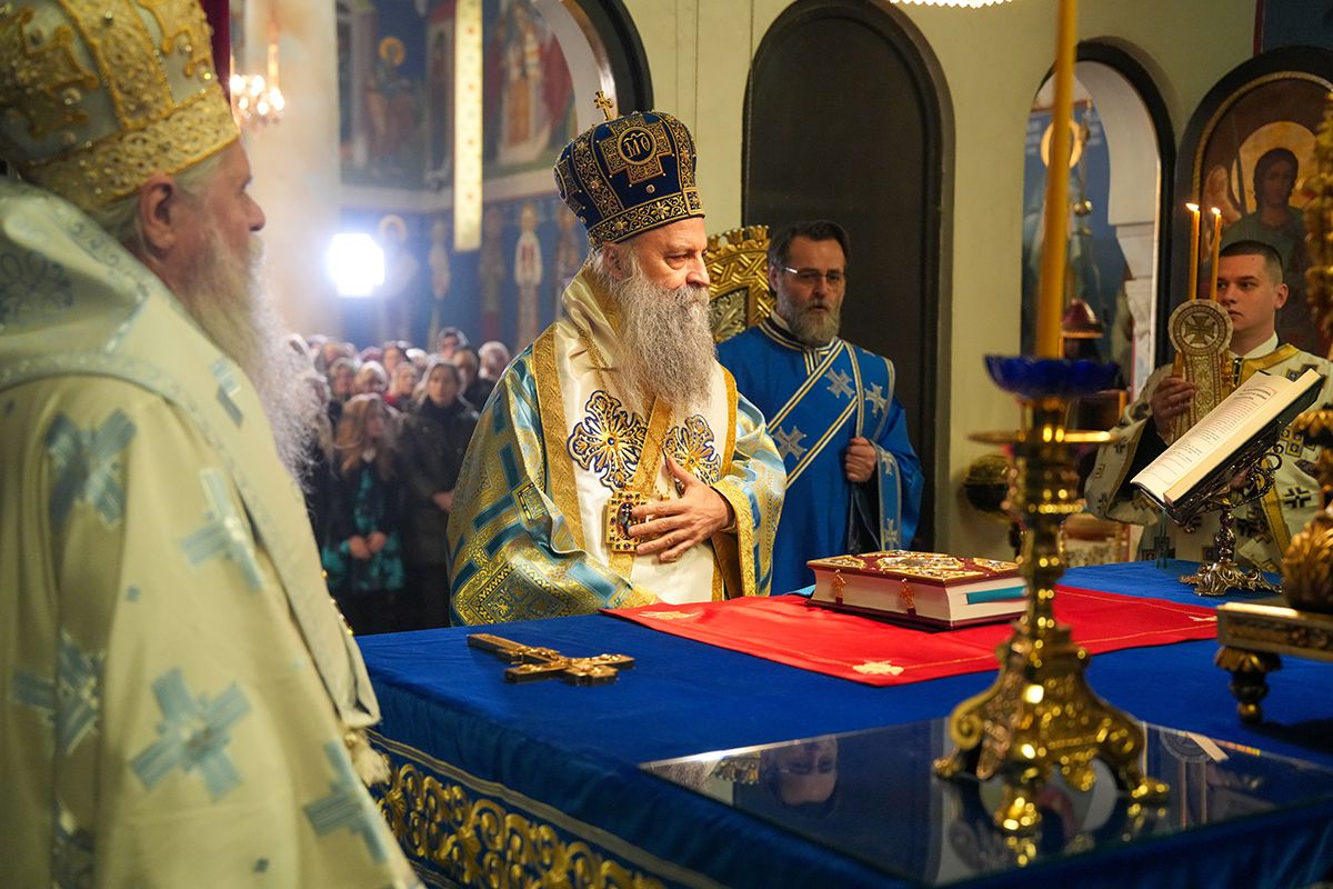 – Часнију од херувима и Славнију од серафима, браћо и сестре, славимо увек! А данас се посебно сећамо Ваведења, догађаја који је спасоносан за нас људе, за сваког од нас појединачно, али и за читав људски род. Сећамо се када је Пресвета Богородица уведена у Храм и тиме показала да је сваком од нас пут који води у смисао, у лепоту, у радост, у живот – улазак у Храм  – беседио је Светејши г. Порфирије и нагласио: