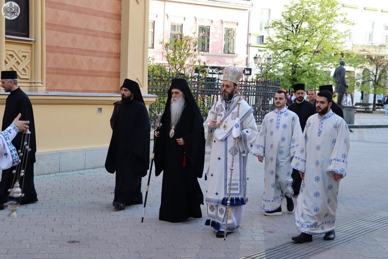 На празник Васкрсења Господа нашег Исуса Христа, 30. марта/12. априла 2026. године, Његово Преосвештенство Епископ мохачки господин Дамаскин началствовао је на пасхалном вечерњем богослужењу у Саборном храму у Новом Саду, уз саслужење протојереја Велимира Врућинића, настојатеља Саборног храма, и ђаконâ Луке Стојисављевића и Василија Драговића, а у молитвеном присуству Његовог Високопреосвештенства Митрополита бачког господина др Иринеја.