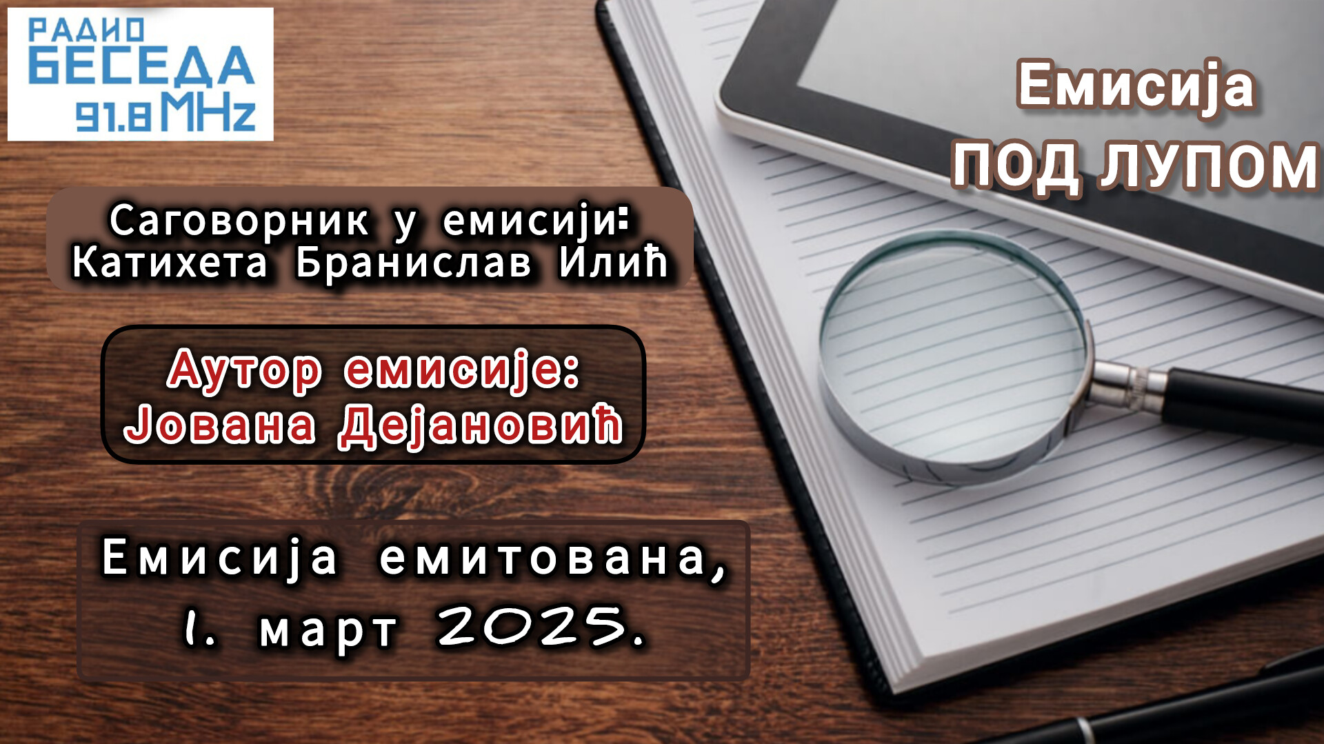 Саговорник у емисији Радио-Беседе „Под лупом“, 1. марта 2025. године био је новосадски катихета Бранислав Илић.