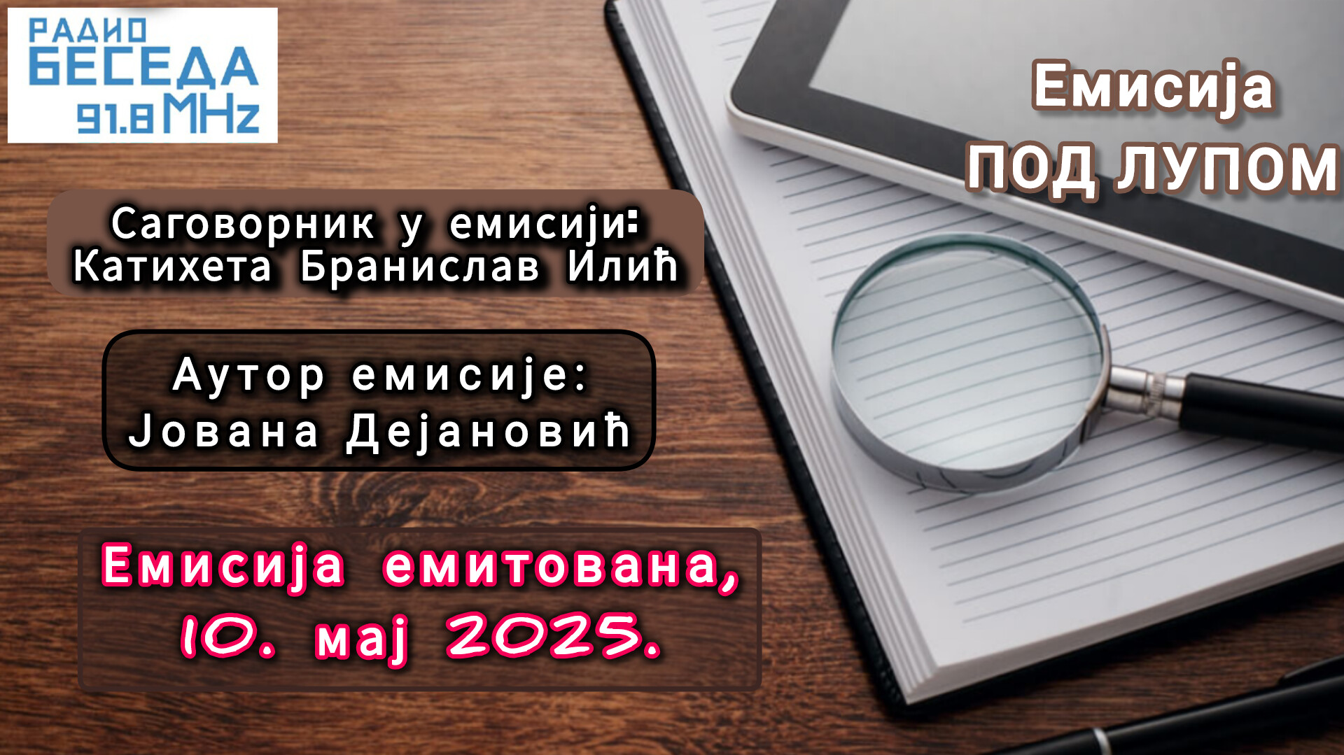 Саговорник у емисији Радио-Беседе „Под лупом“, 10. маја 2025. године био је новосадски катихета Бранислав Илић.