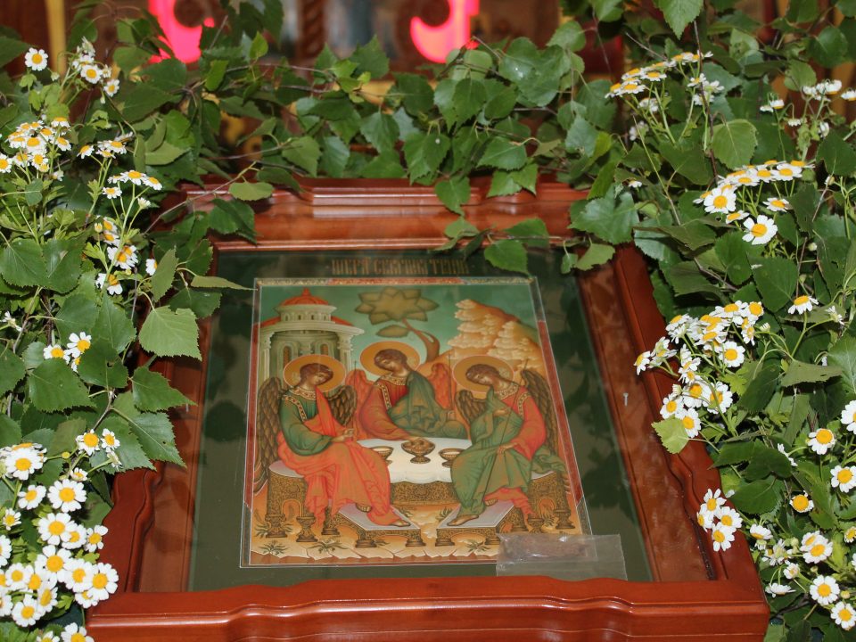 One of the special liturgical characteristics of Pentecost is the Vespers of Holy Pentecost. During this Vespers, six special petitions are added to the Great Litany. After the evening entrance and the chanting of the Great Prokeimenon, three prayers are read, characterised by a tone of thanksgiving and supplication. These prayers glorify God’s love for us and express our plea to remain in that love. They include petitions for all our needs—both for the living members of the Church, upon whom a blessing is invoked, and for the departed members of the Church, for whose repose we pray to the Lord and our Resurrection. These prayers, which are offered only at the Vespers of Pentecost, represent our heartfelt appeal to the Heavenly Father to preserve us under His divine protection. During the reading of these prayers, the faithful in the temple weave wreaths from grass, which carry their own symbolism. The wreath is an image of divine grace descending from above; it is also a symbol of the crown of martyrdom, a seal of God’s gift and support, and an expression of God’s perfection woven into all creation. According to the liturgical order, the liturgical vestments of the clergy are green, and the holy space of the church is adorned with greenery. Thus, the colour green predominates—not only as a symbol, but also as a lesson—reminding us that greenery is the symbol of life, and on the Feast of Pentecost, we celebrate not merely biological life, but eternal life, which is granted to us by the Saviour of the world.