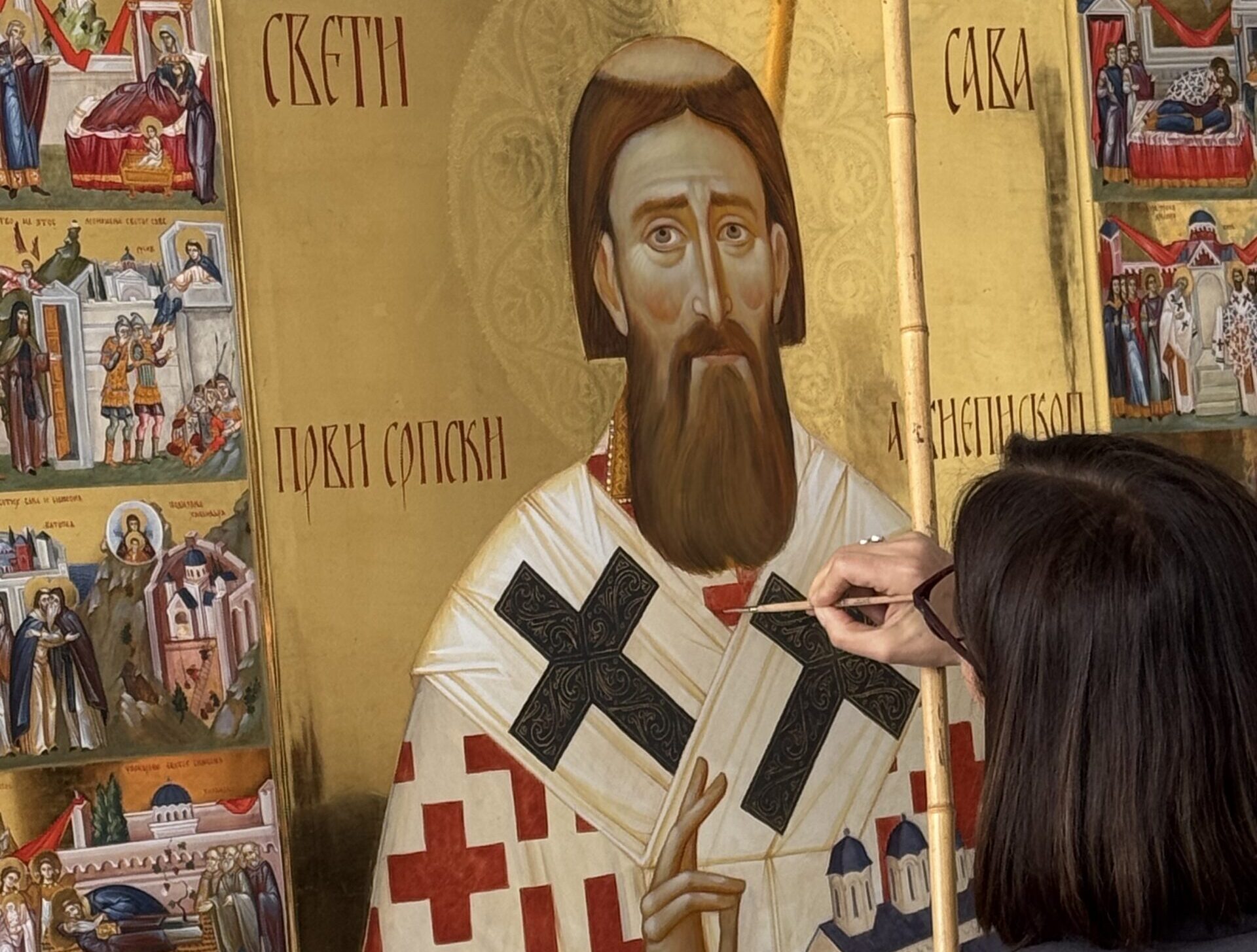 • Недавно сте насликали житијску икону Светог Саве за манастир Ковиљ. Можете ли нам рећи нешто више о том пројекту и самом процесу израде иконе? Како се родила идеја за сценама које су приказане?